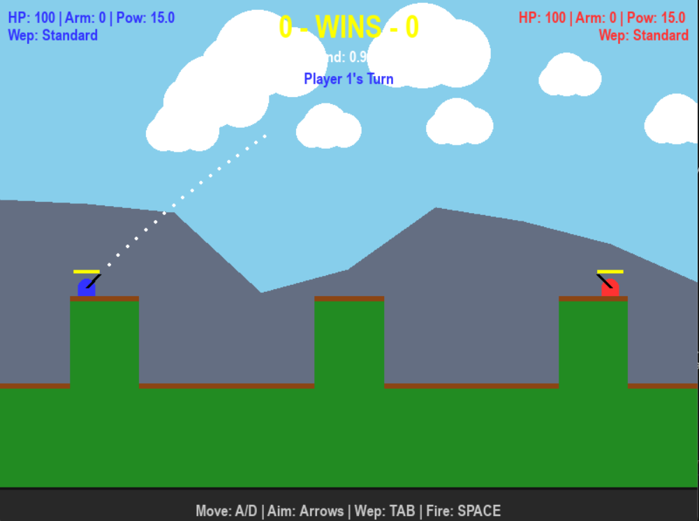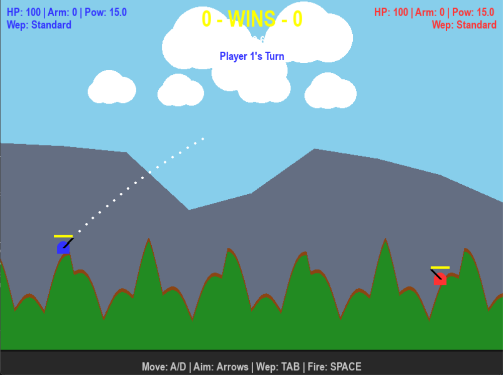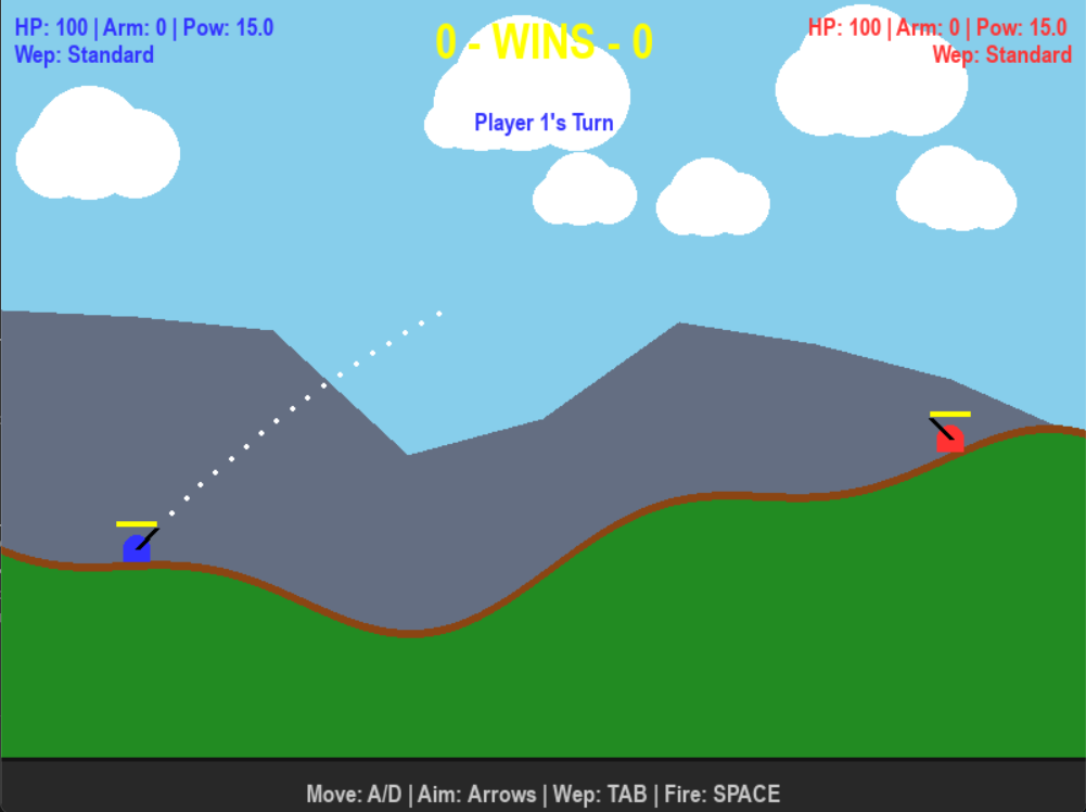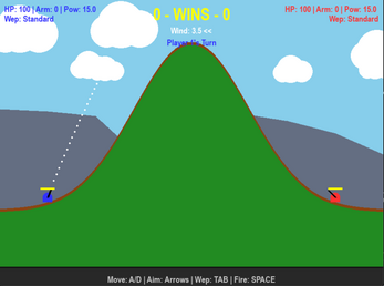 Welcome to PyShock Artillery, a strategic 2D tank combat game where you face off against friends or the CPU! Manage your fuel, adapt to shifting winds, chase down supply drops, and survive random earthquakes as you fight to be the last tank standing.